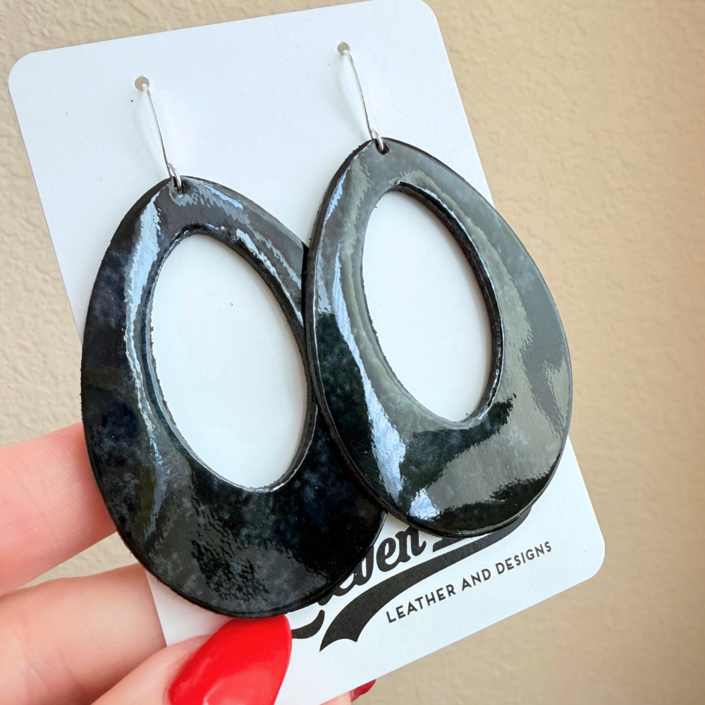 Glossy Black Fallon Leather Earrings