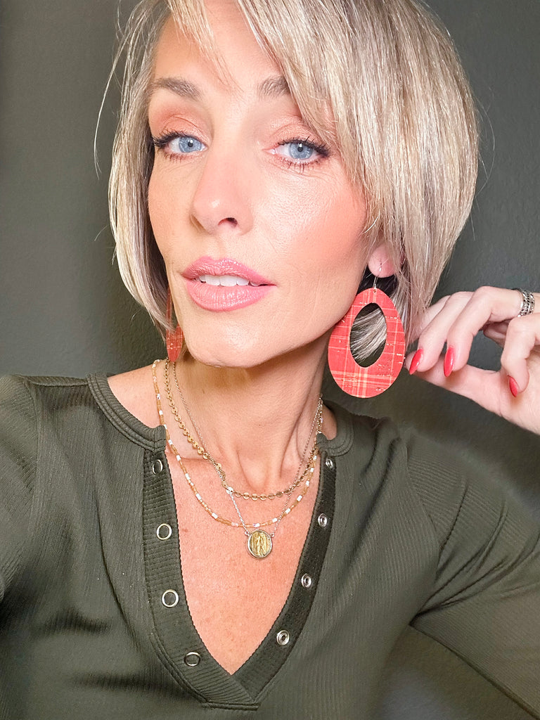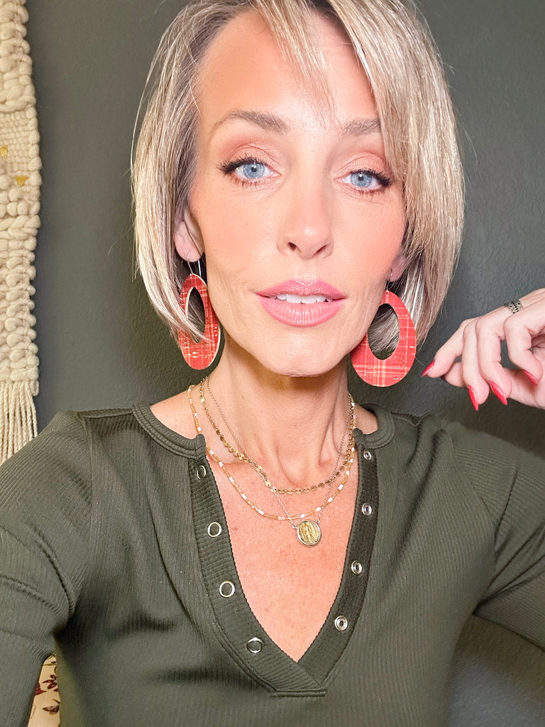 Barn Red Plaid Fallon Cork Earrings is backordered and will ship as soon as it is back in stock.