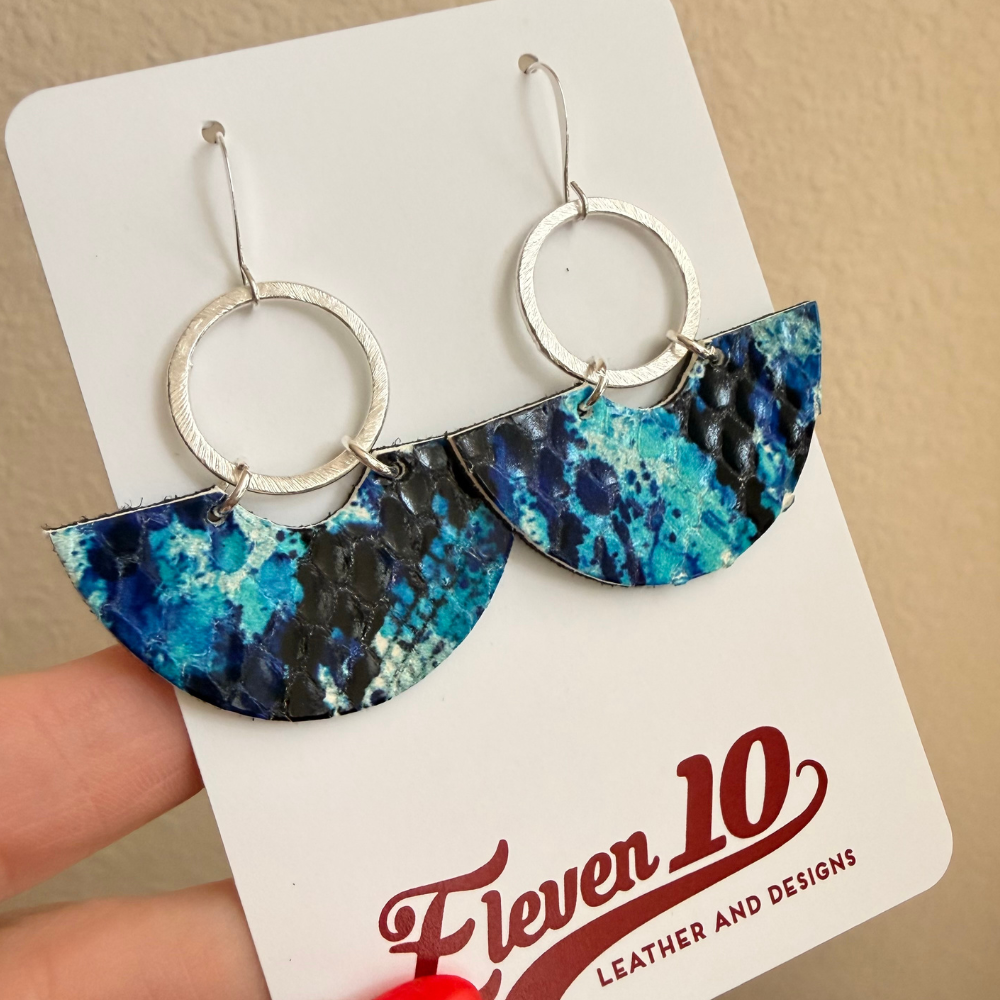 Blue Serpent Claire Leather Earrings - Silver / Circle is backordered and will ship as soon as it is back in stock.