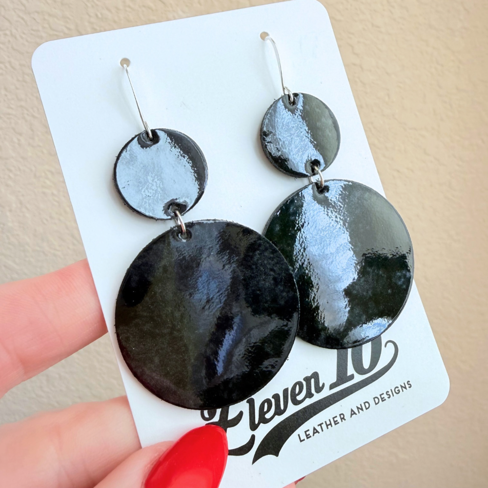 Glossy Black Mia Leather Earrings