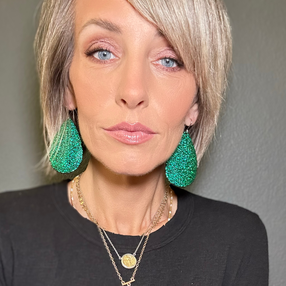 Green Crackle Teardrop Leather Earrings