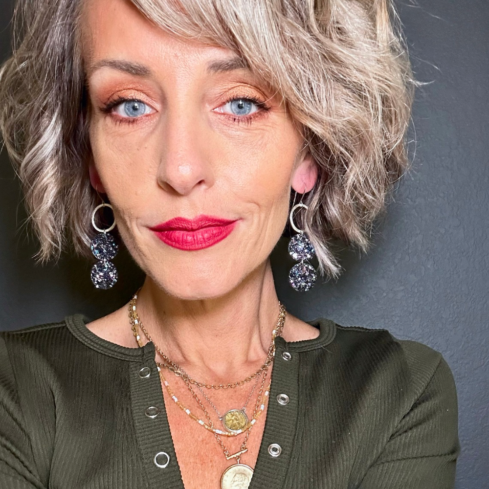 Midnight Glitter Mini Nova Leather Earrings - Gold is backordered and will ship as soon as it is back in stock.