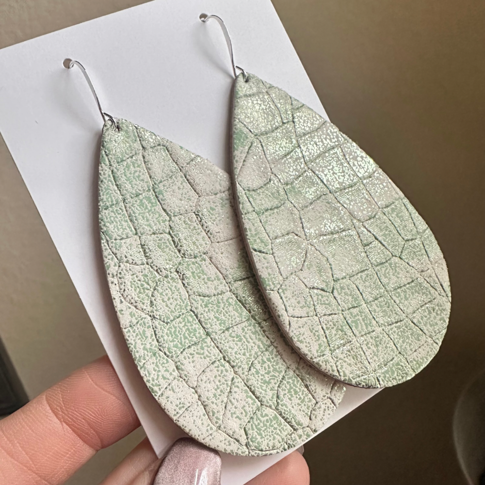 Peppermint Patty Teardrop Leather Earrings - Medium is backordered and will ship as soon as it is back in stock.