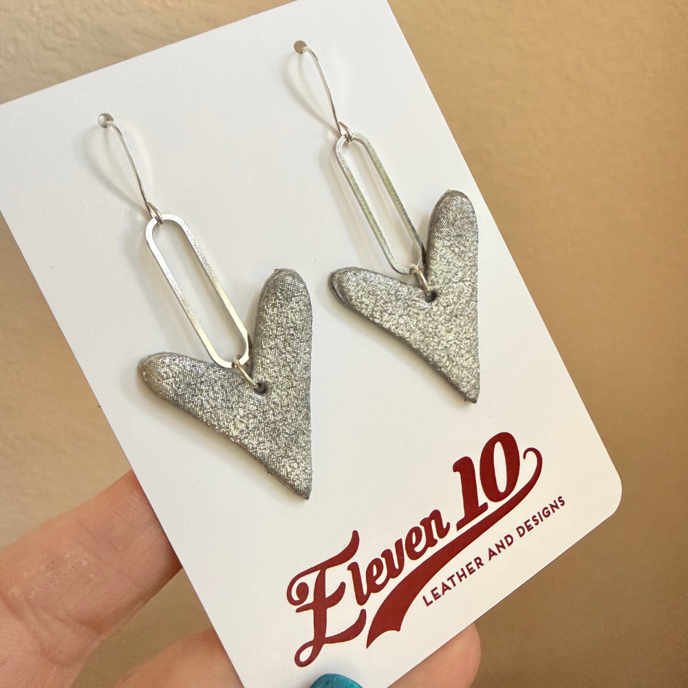 Stardust Heart Drop Leather Earrings - Silver is backordered and will ship as soon as it is back in stock.