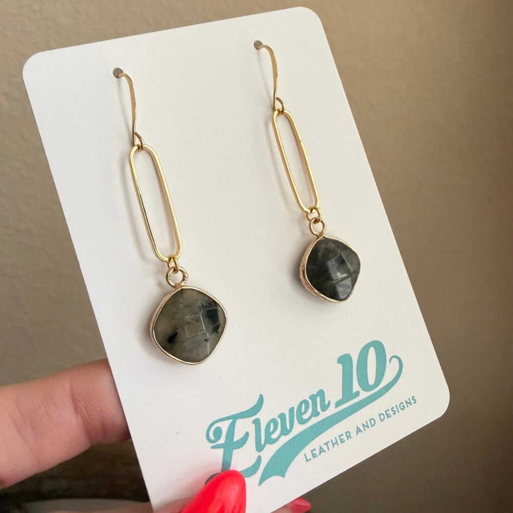 Labradorite Drop Earrings - Hoop is backordered and will ship as soon as it is back in stock.
