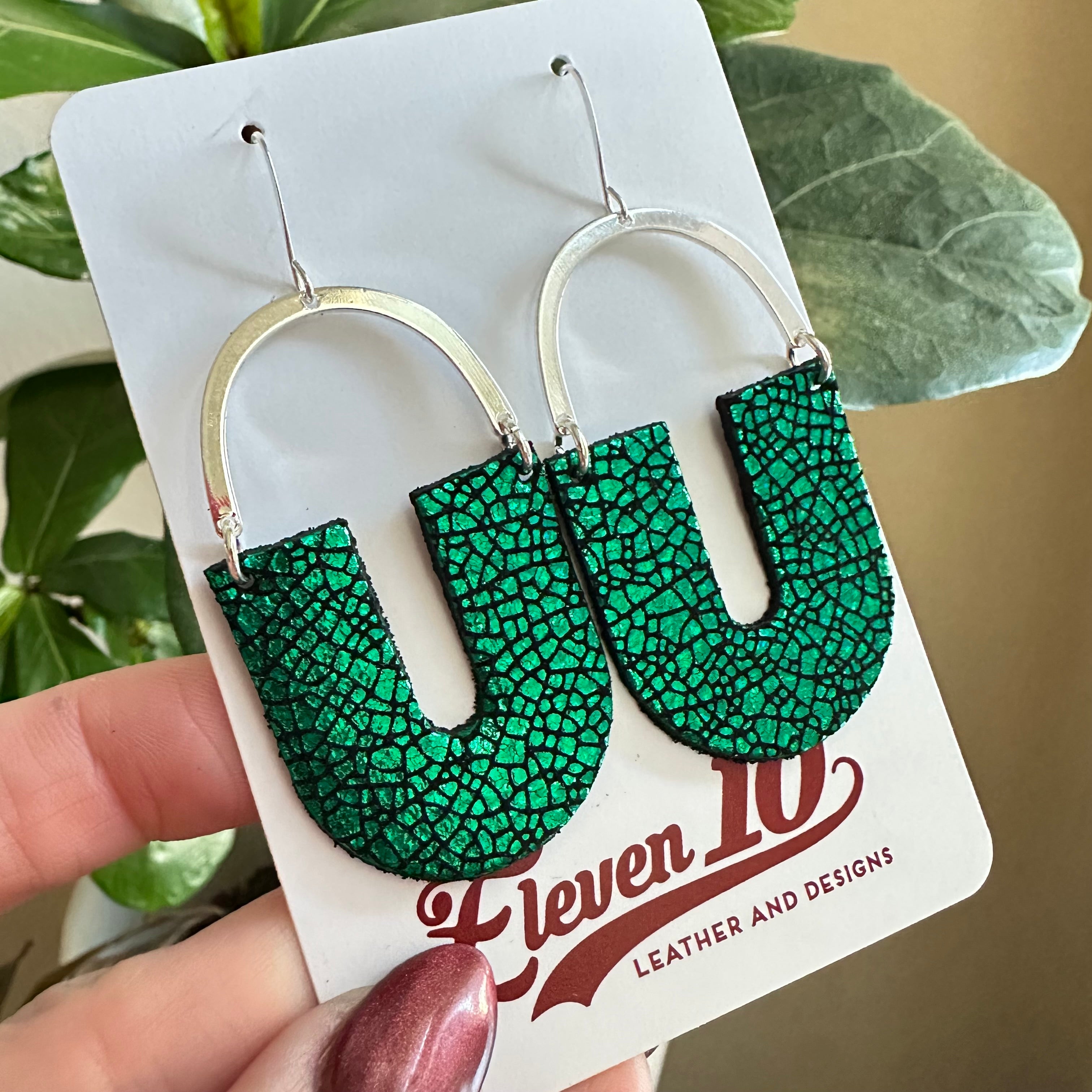 Green Crackle Katie Leather Earrings - Brass is backordered and will ship as soon as it is back in stock.