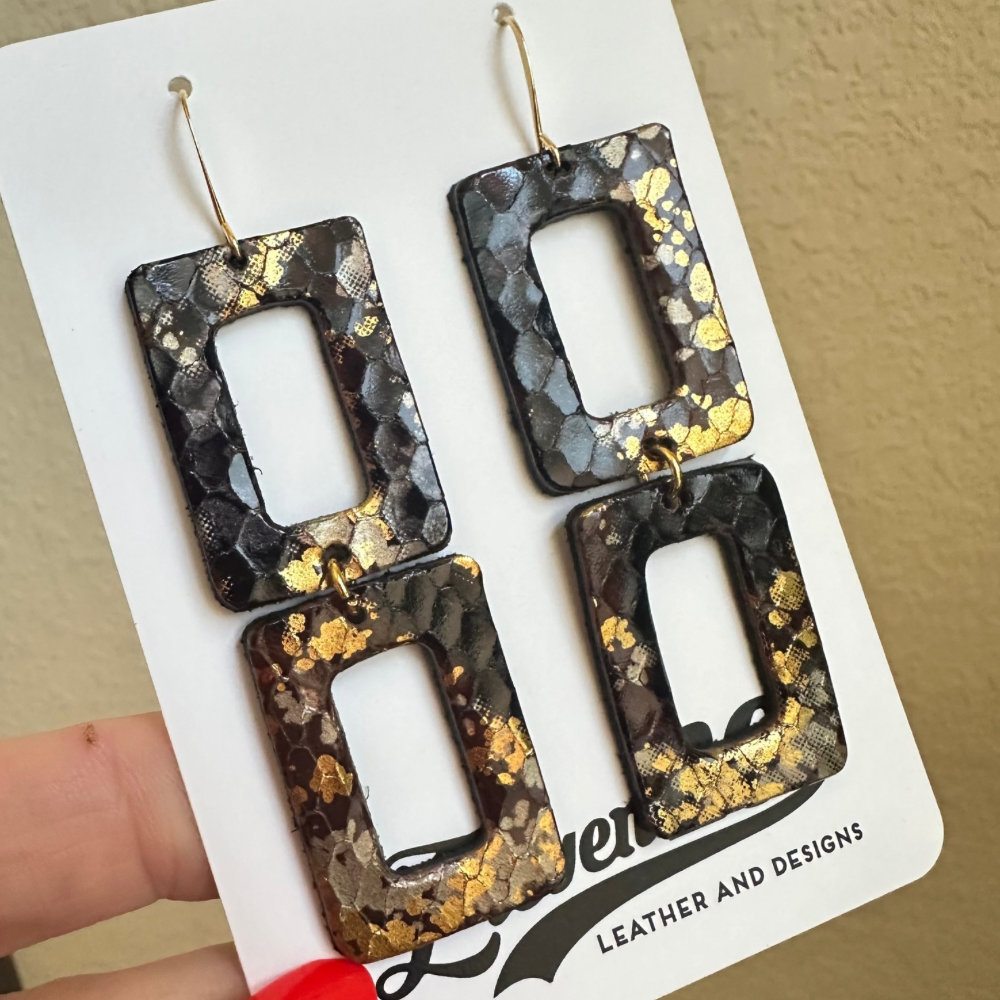 Brown and Gold Snake Sloane Leather Earrings