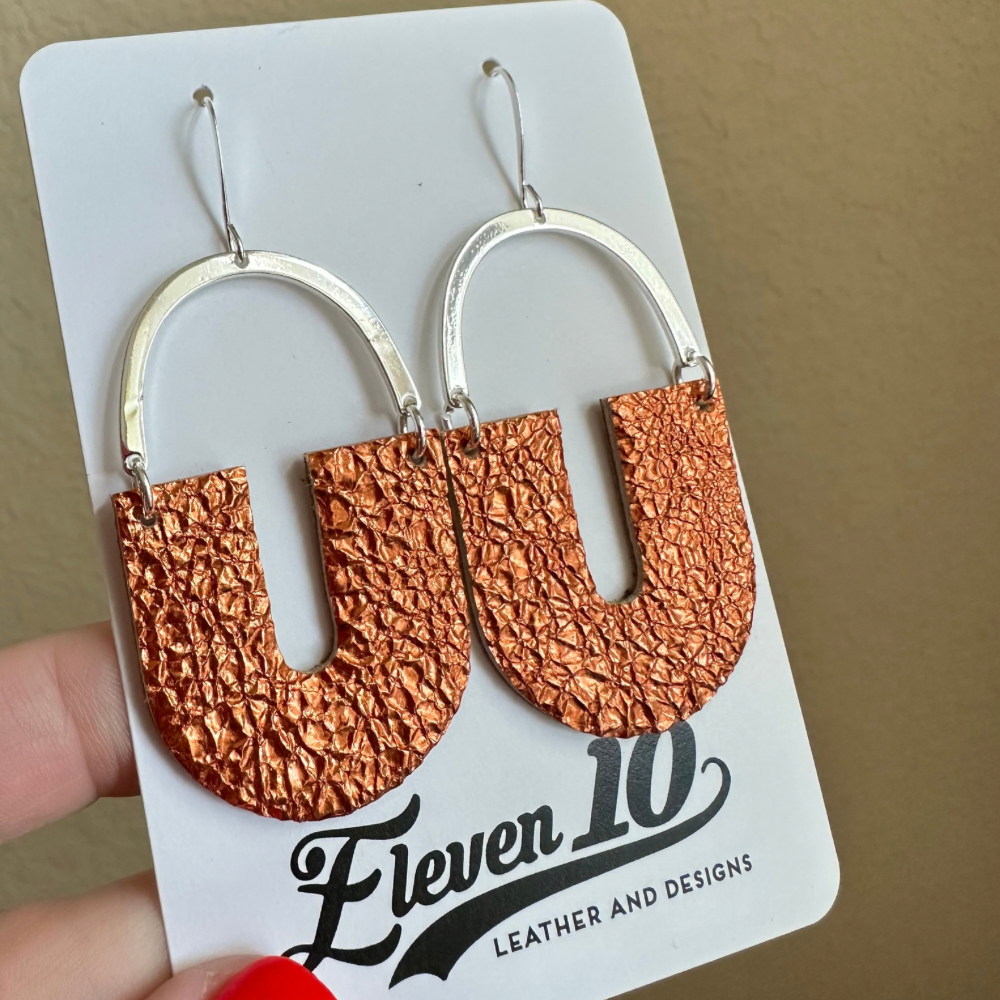 Copper Line Katie Leather Earrings - Brass is backordered and will ship as soon as it is back in stock.