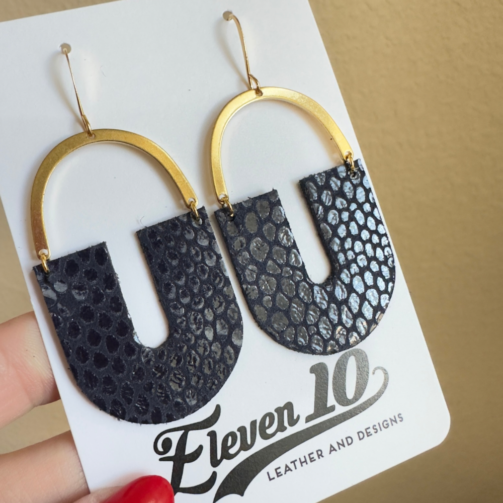 Navy Snake Katie Leather Earrings - Gold is backordered and will ship as soon as it is back in stock.
